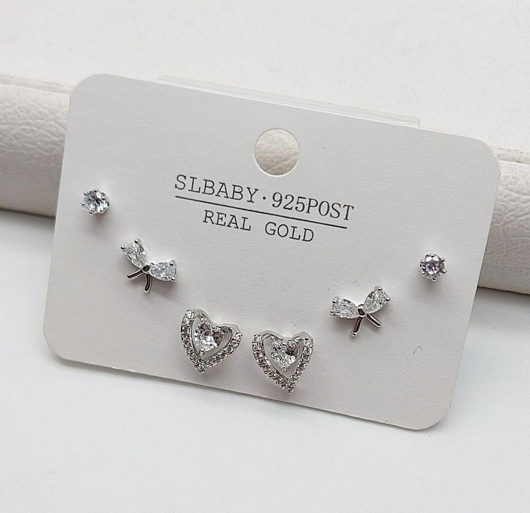پک گوشواره قلب و پاپیون کریستالی بسته 6عددی