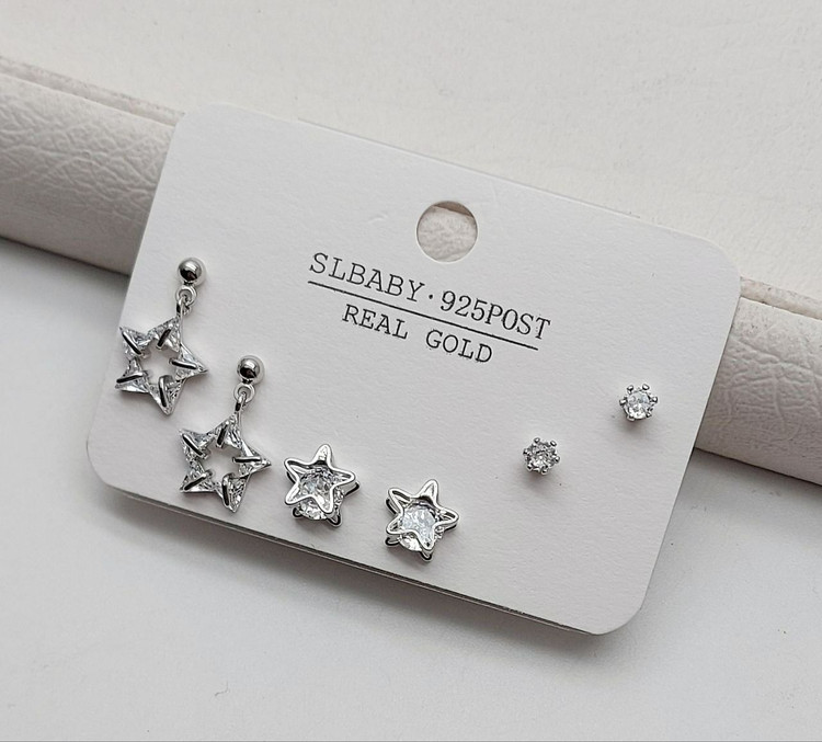 پک گوشواره ستاره آسمونی بسته 6عددی در دو رنگ طلایی و نقره ای