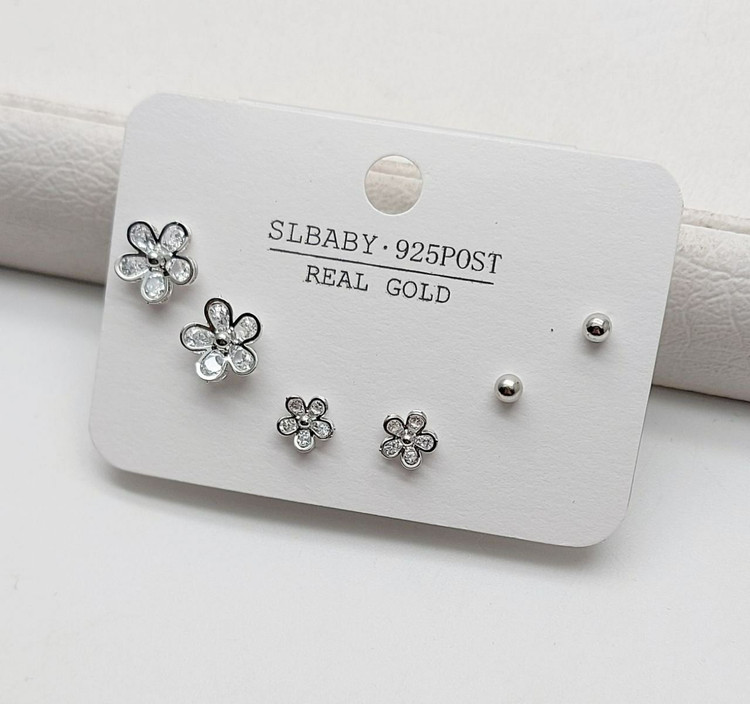 پک گوشواره گل پنج پر کریستالی بسته 6عددی