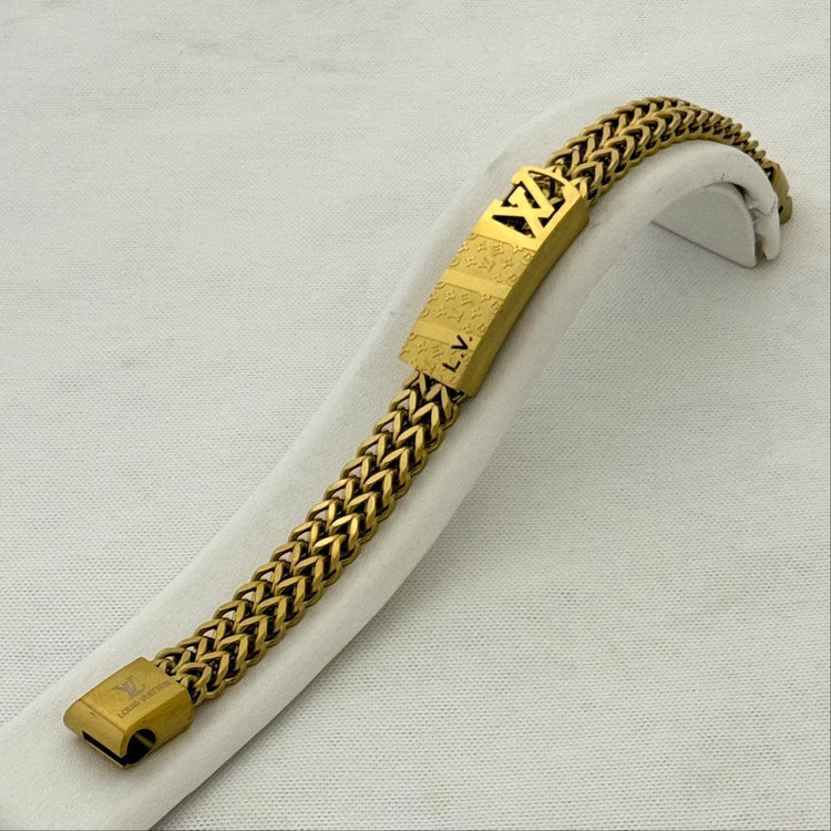 دستبند مردانه بند حصیری گلد با صفحه لویی گلد برند ژوپینگ هدیه ولنتاینی به یاد ماندنی کپی