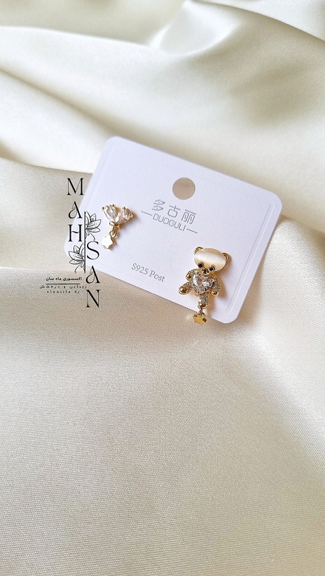 گوشواره ست فانتزی طرح خرس کریستالی گلد