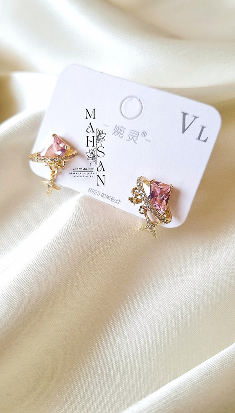 این گوشوارههای پروانهای زیبا با طراحی خاص و نگینهای ظریف، انتخابی فوقالعاده برای کسانی است که به جواهرات ظریف و درخشان علاقه دارند.
