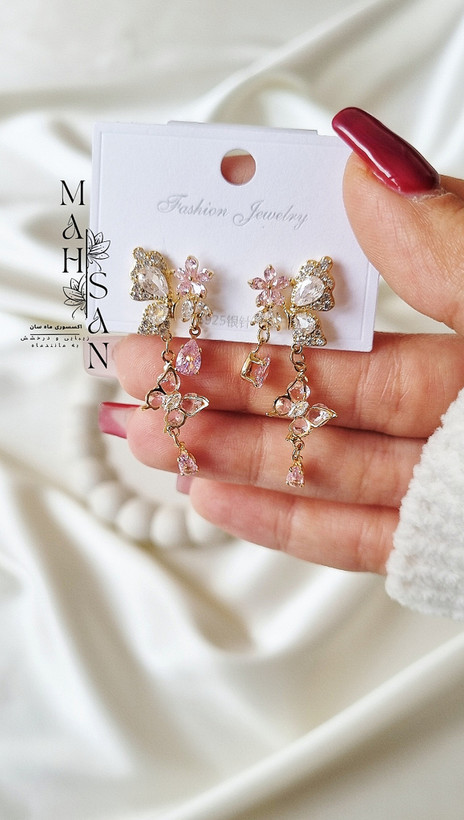 این گوشوارههای پروانهای زیبا با طراحی خاص و نگینهای ظریف، انتخابی فوقالعاده برای کسانی است که به جواهرات ظریف و درخشان علاقه دارند.