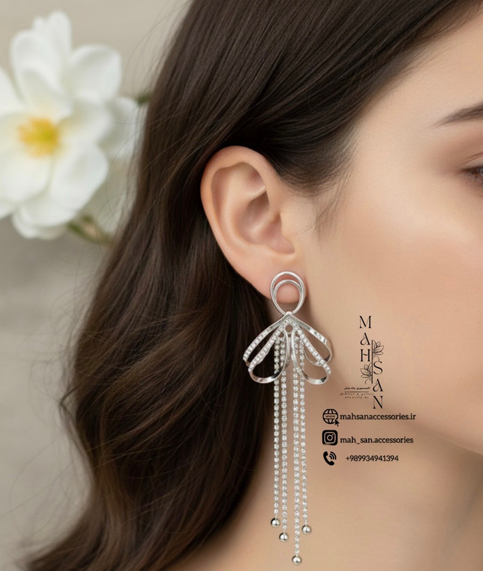 گوشواره زنانه فشن نقره پاپیونی با آویز نگینی طرح دوم موجود