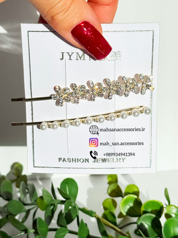 گیره مو گل نگیندار مجلسی جذاب و خاص ۲عددی
