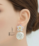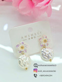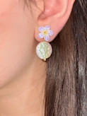 گوشواره گل هفت رنگ با آویز صدف دریا