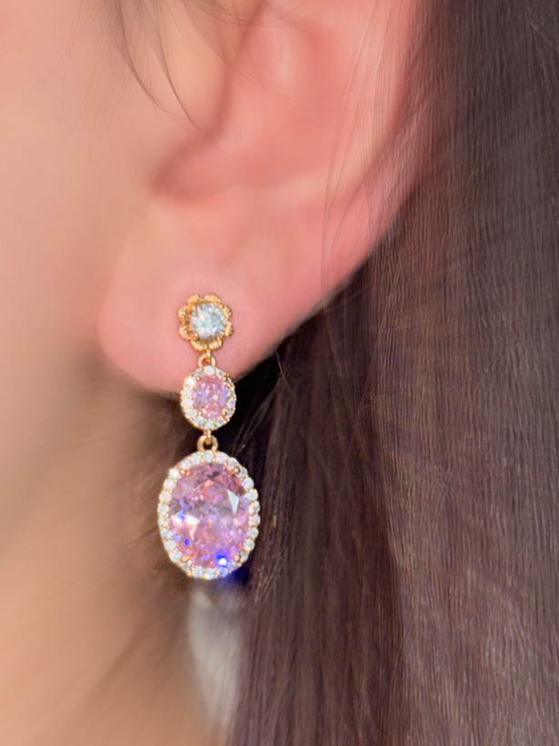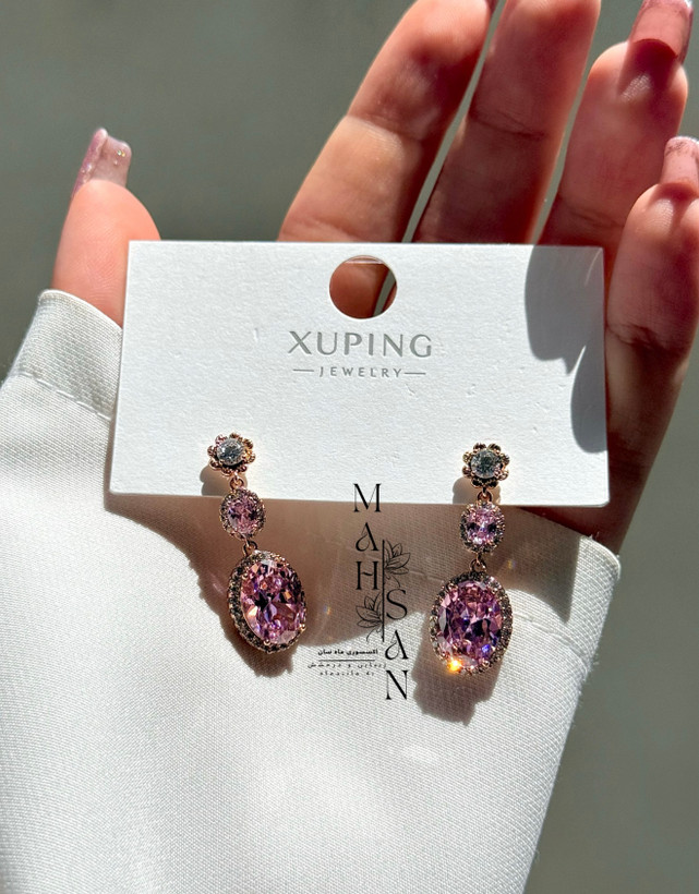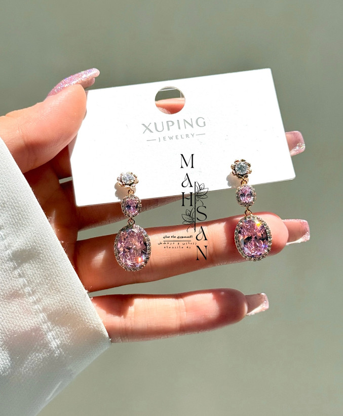 گوشواره مجلسی جواهرتشان صورتی دلناز
