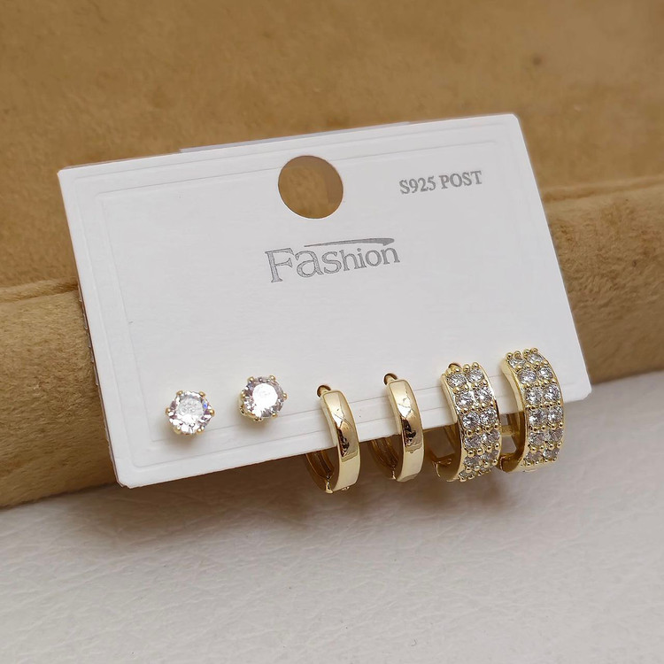 پک گوشواره زنانه فانتزی کد 0135 مینیمال رنگ گلد بسته 6عددی