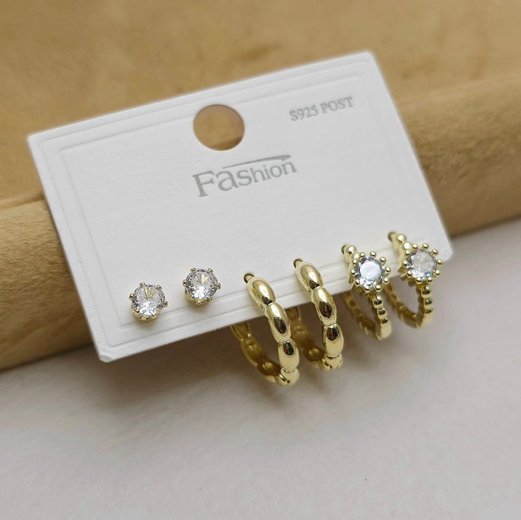 پک گوشواره زنانه فانتزی کد 0140 مینیمال رنگ گلد بسته 6عددی