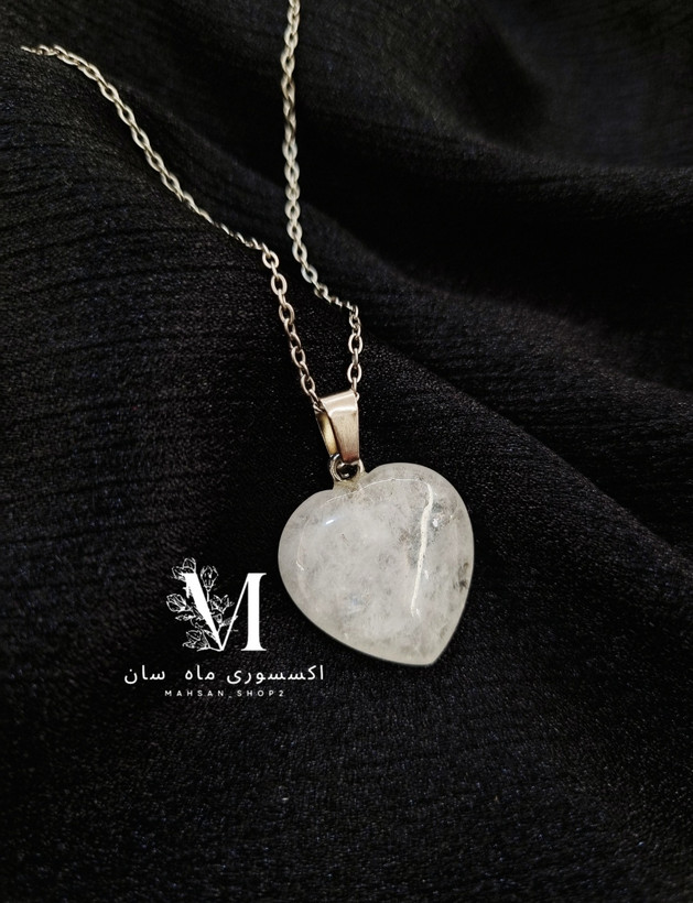 گردنبند قلب سنگ ماه سفید شیشه ای