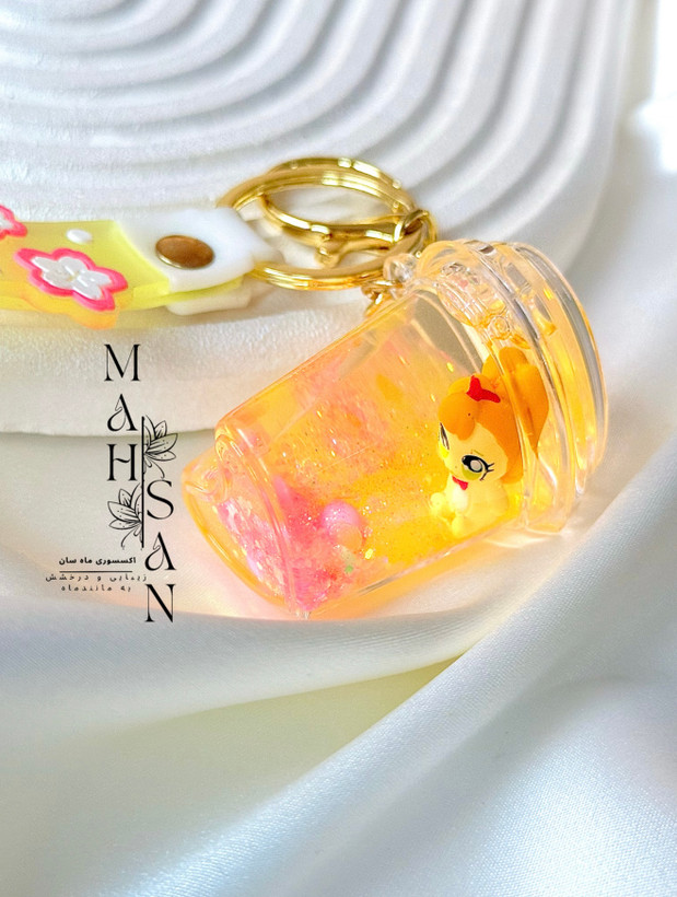 سرکلیدی فانتزی قلبی زرد مدل آکواریومی
