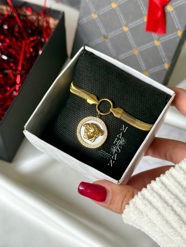 دستبند ورساچه طلایی جذاب با زنجیر ماری گلد