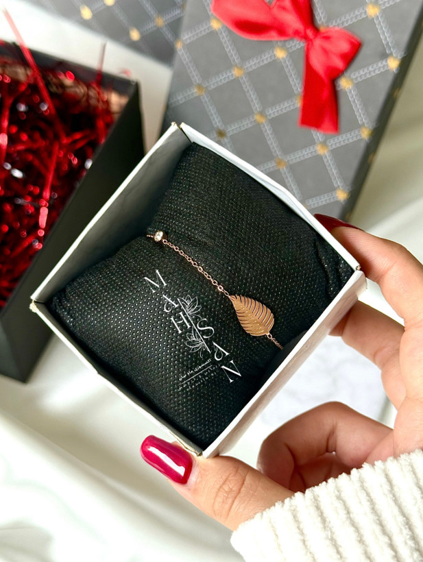دستبند برگ و نگین رزگلد مینیمال و جذاب