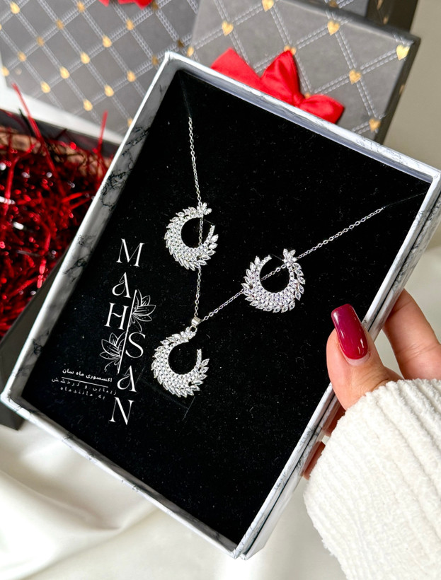 نیم ست جذاب ظریف اشک فرشته سوارسکی فول نگین رنگ ثابت