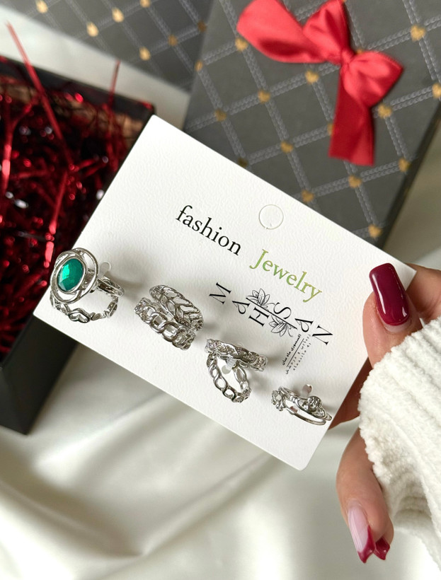 پک انگشتر پری دریا جواهر نشان 8 عددی رنگ سیلور