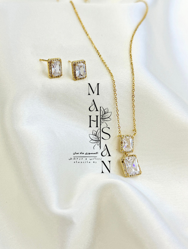 نیم ست جذاب مربع کریستالی مینیمال رنگ گلد قیمت استثنایی جشنواره