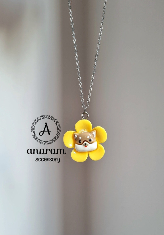گردنبند گل پنج پر زرد عروسک صورتی