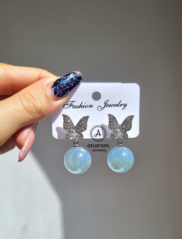 گوشواره پروانه نگینی با گوی دریایی هفت رنگ