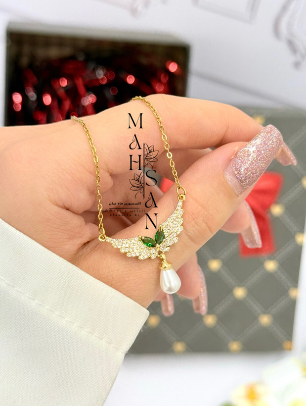 گردنبند بال فرشته با کریستال زمرد مدل طلا هدیه جذاب و خاص