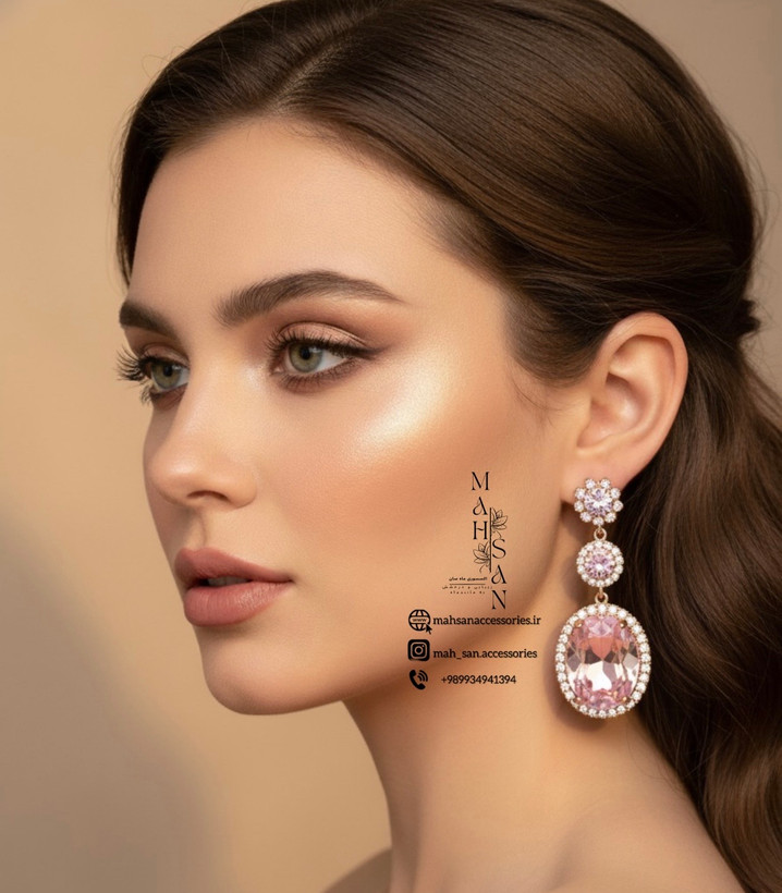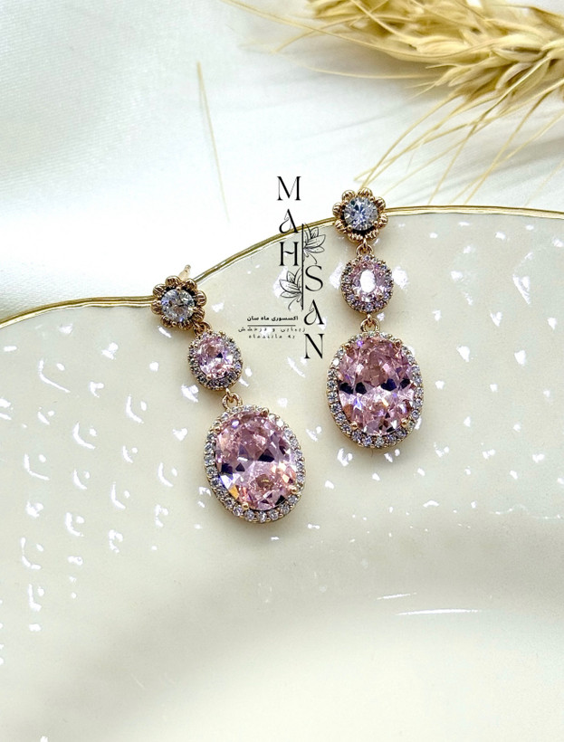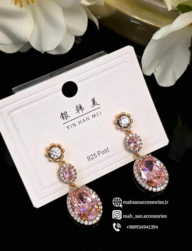 گوشواره جواهری صورتی مجلسی برند ژوپینگ سایزکوچک