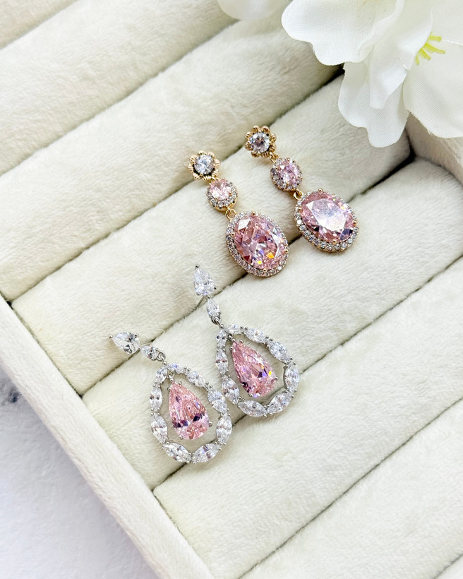 گوشواره جواهری صورتی مجلسی ژوپینگ