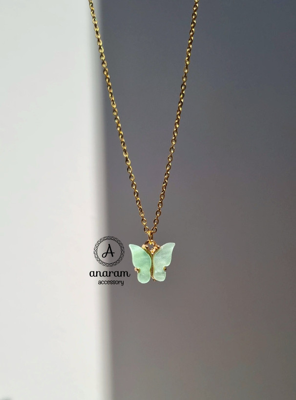 گردنبند دخترانه پروانه رزینی سبز ارسال رایگان