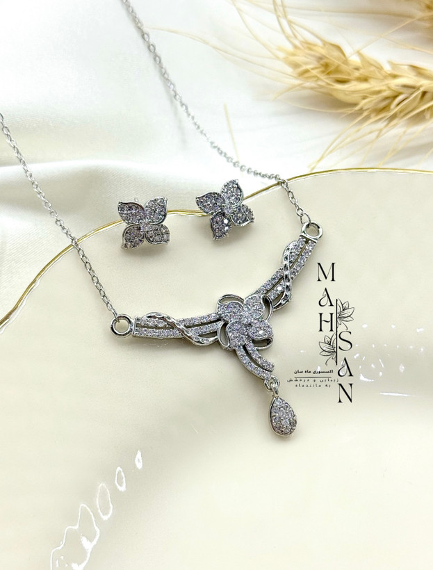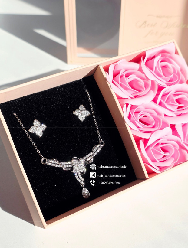نیم ست فوق العاده جذاب گل آویز جواهری نماد عشق