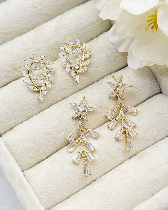 گوشواره برگ کریستال کارشده رومی رنگ طلایی