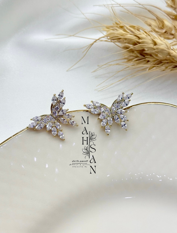 گوشواره دخترانه پروانه کریستال طرح مرداس