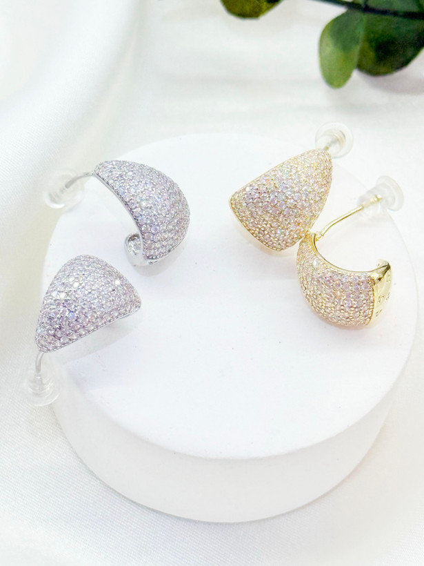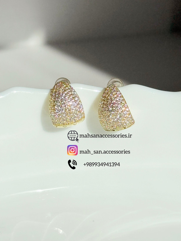 گوشواره زنانه طرح طلا فول نگین رنگ گلد سایز کوچک