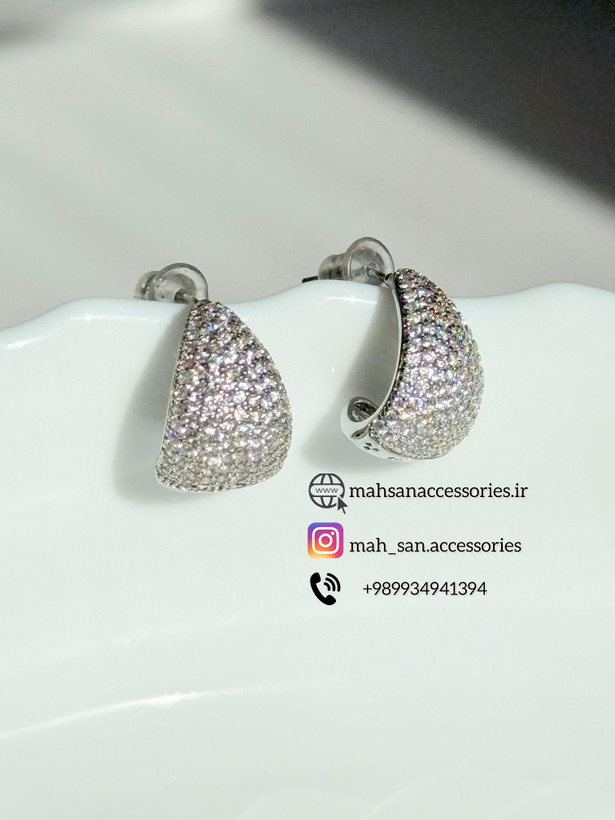 گوشواره زنانه طرح طلا فول نگین رنگ سیلور