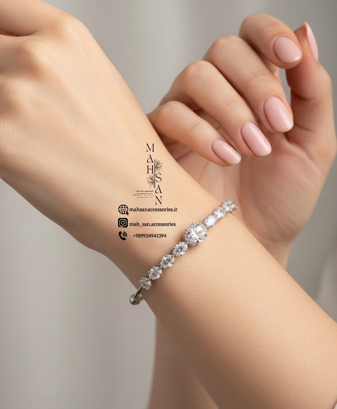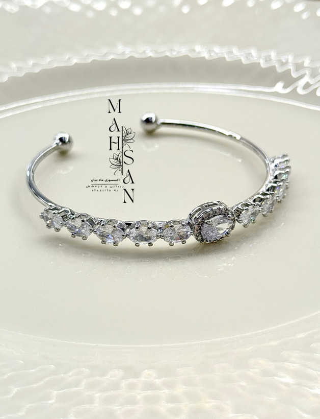 دستبند بنگل کریستال جواهری طرح برلیان رنگ سیلور