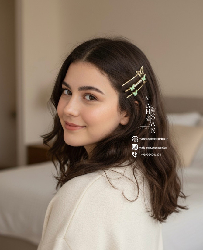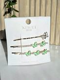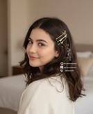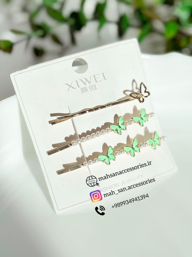گیره مو پروانه سبز نگیندار مجلسی 3عددی تصویردوم موجود