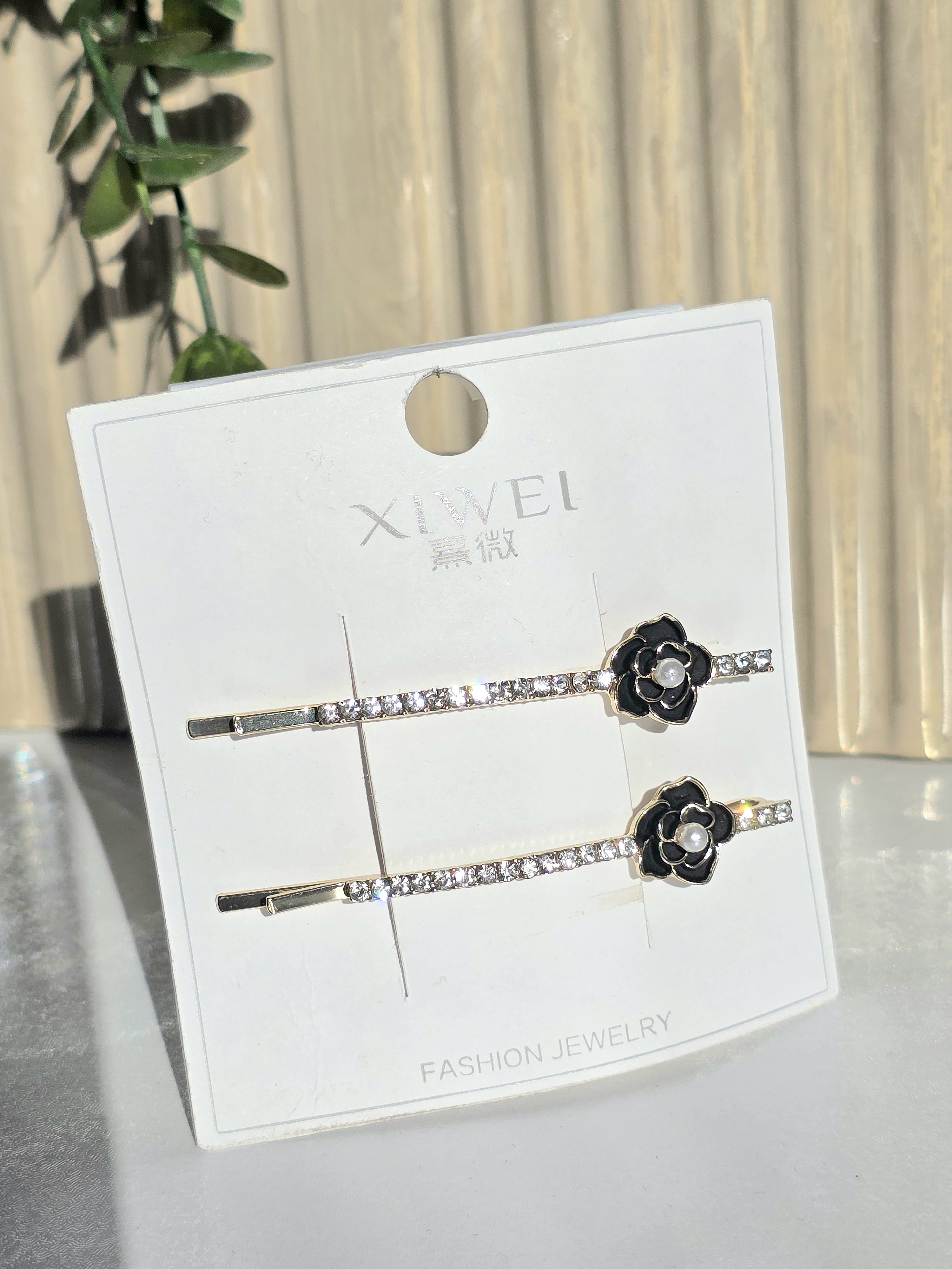 گیره مو گل سیاه نگیندار مجلسی جذاب و خاص 2عددی