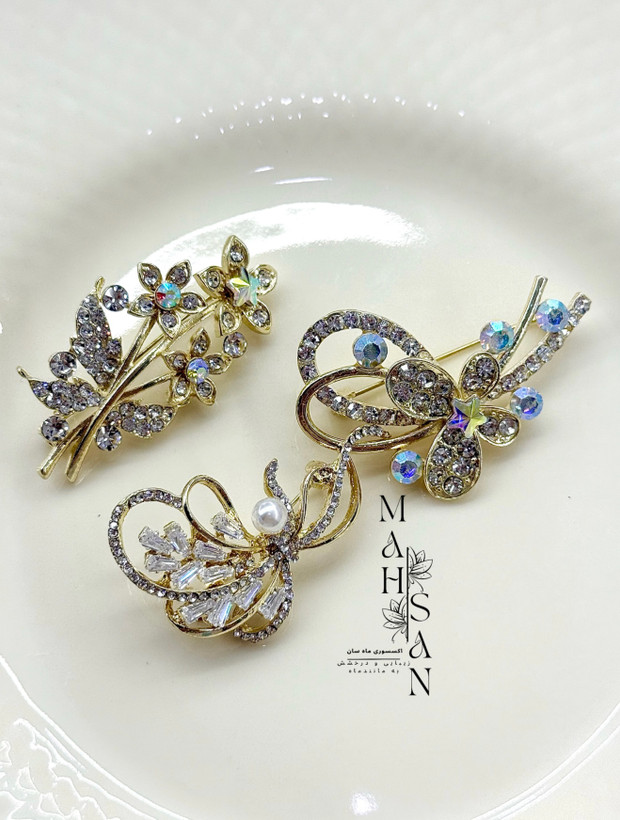 سنجاق سینه مجلسی فول نگین شکوفه کد Xu088