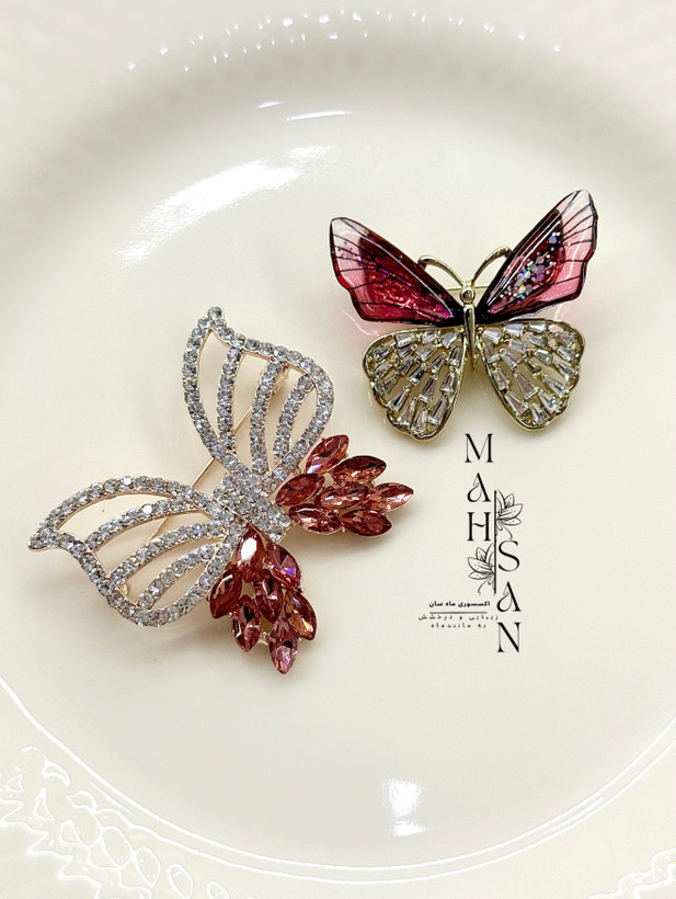 سنجاق سینه مجلسی فول نگین پروانه کد Xu086