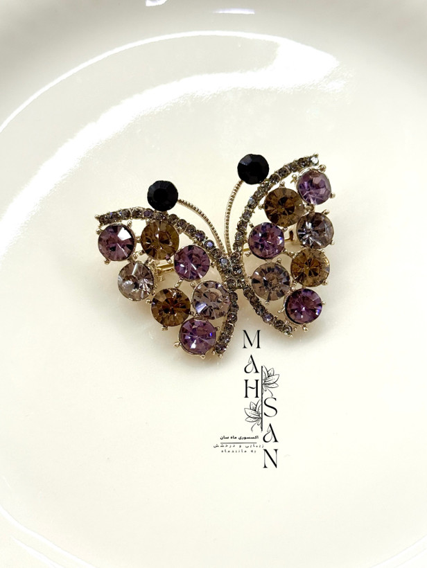 سنجاق سینه مجلسی فول نگین پروانه کد Xu01130
