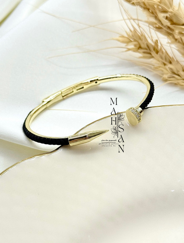 دستبند بنگل میخ طلایی مشکی کد Xu01721