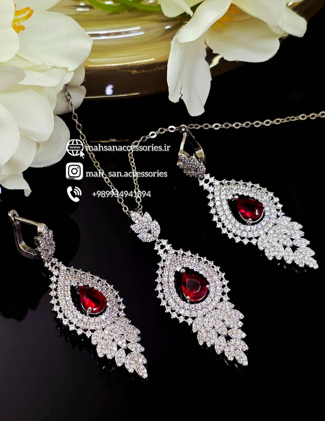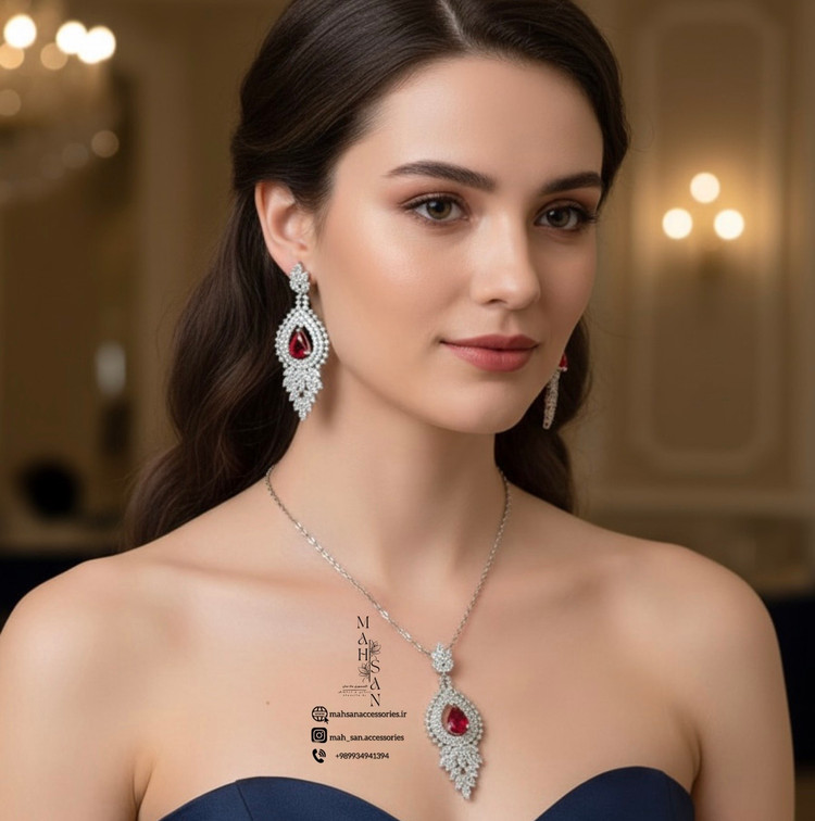 نیم ست یلدایی قرمز زنانه جواهری کد Xu017634