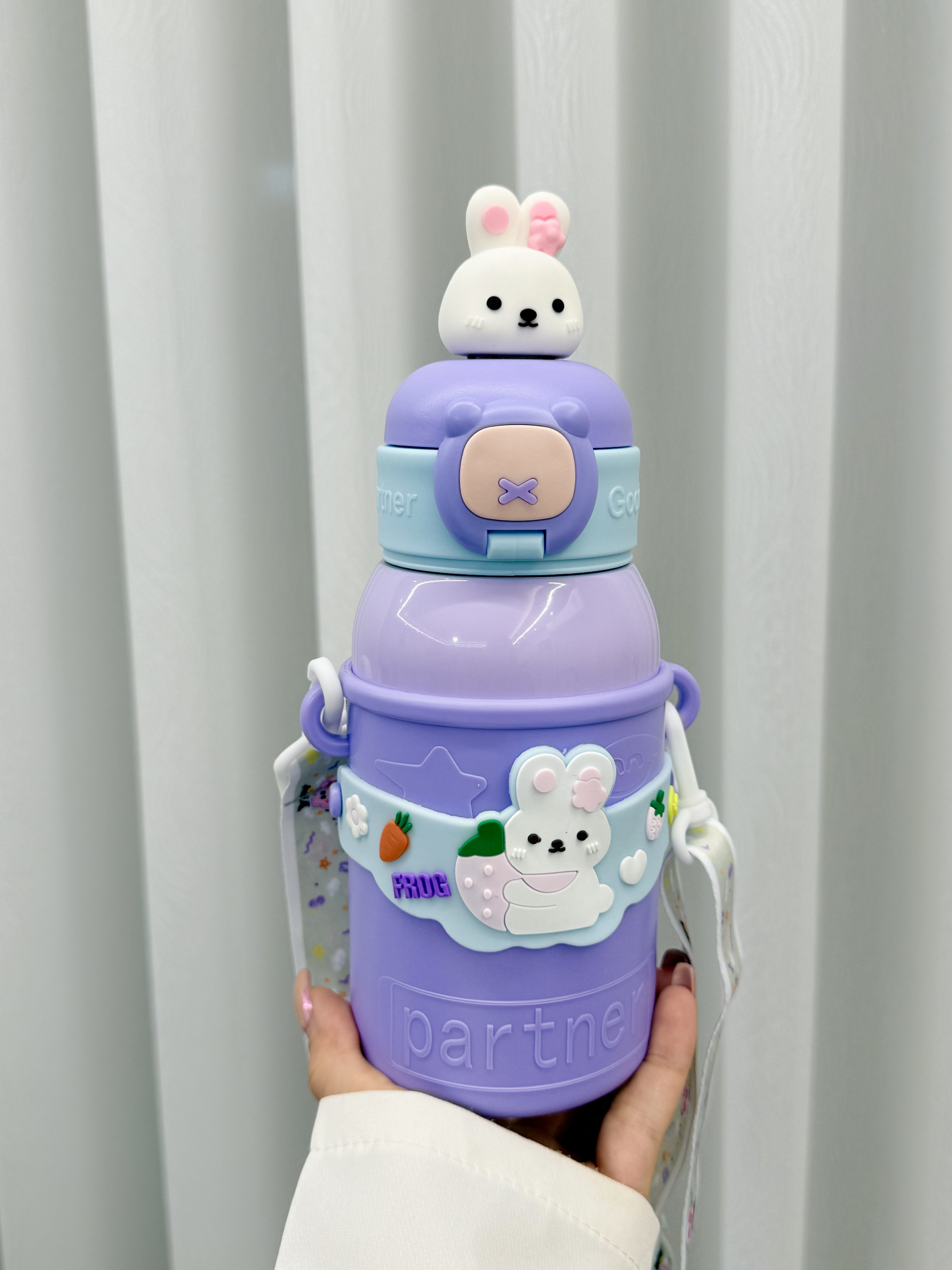 قمقمه فلاسک صورتی موجود مدرسه عروسکی دوکاره (سرد و گرم) کیفیت ضمانتی حجم 600میلی لیتر