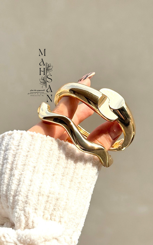 دستبند بنگل فشن رنگ گلد رنگ ثابت طرح حلقه دو موج