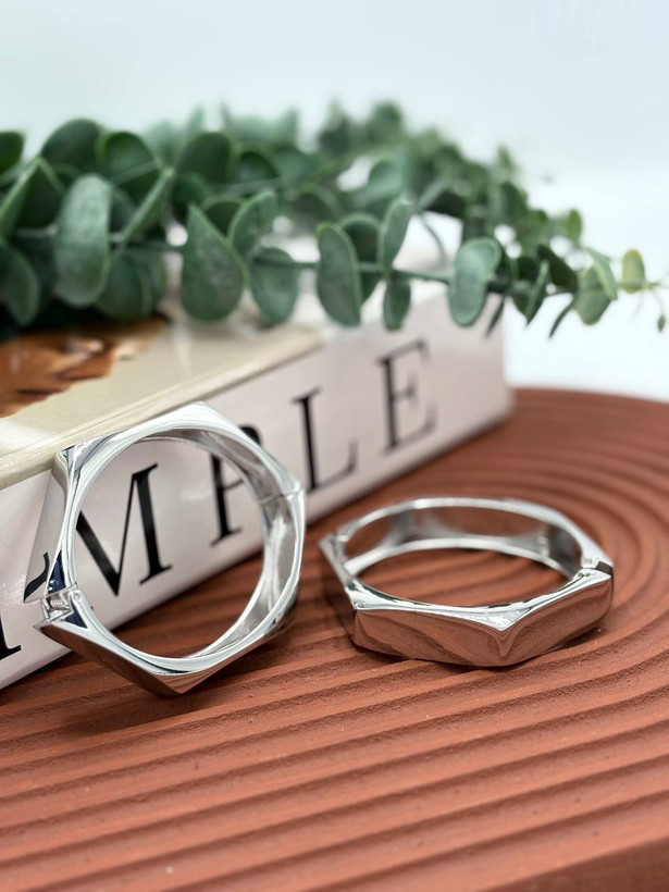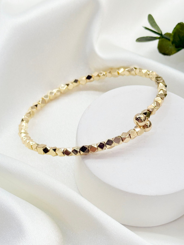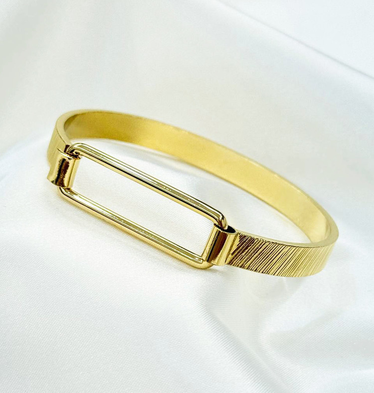 دستبند بنگل فشن رنگ گلد رنگ ثابت طرح حلقه دو موج