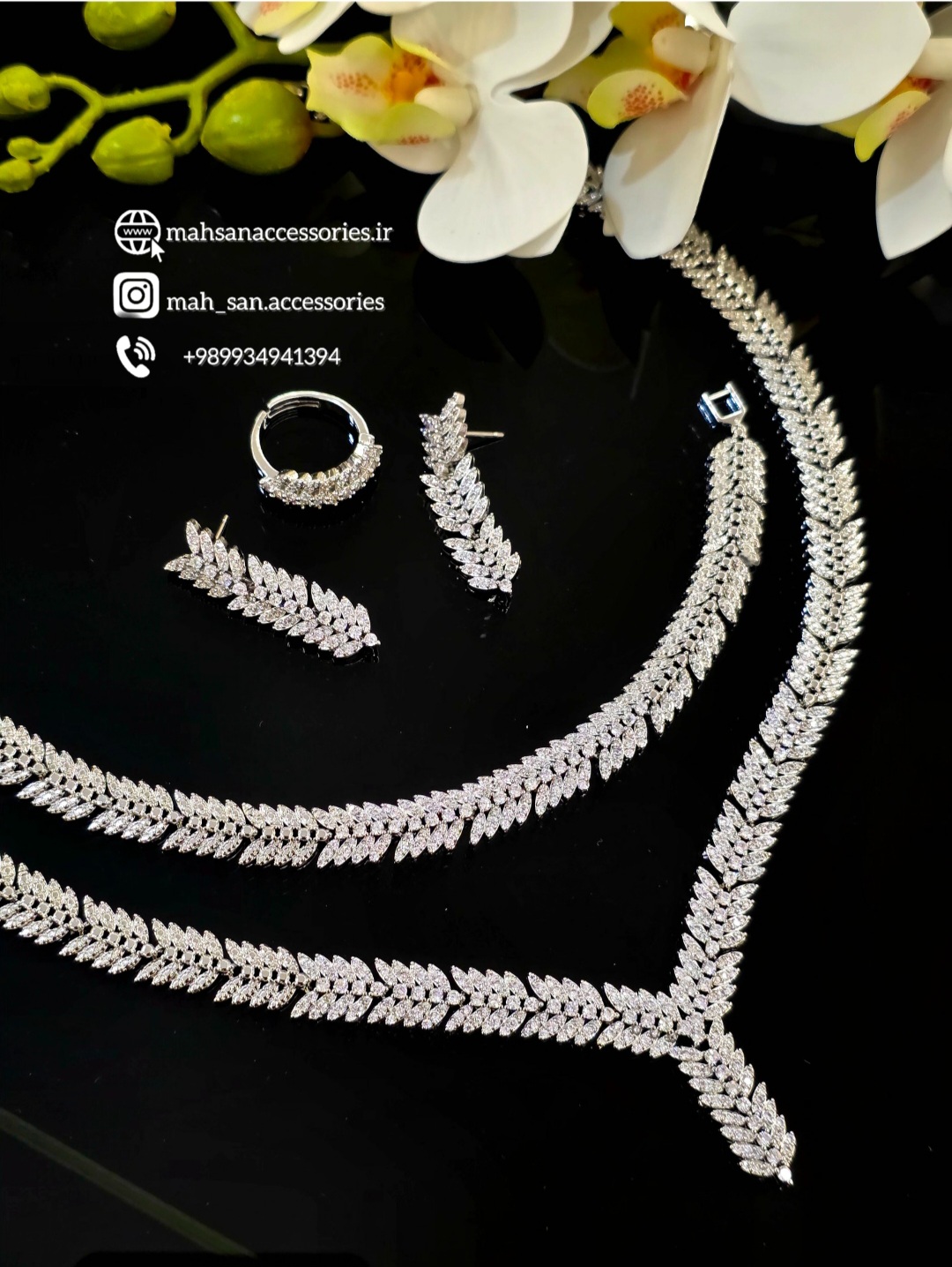 نیم ست عروس طرح طلا سفید تک لاین مدل لیلیوم رنگ ثابت
