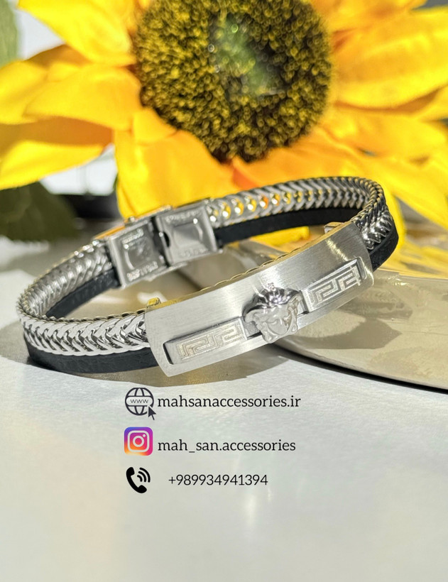 دستبند مردانه مشکی ورساچه هدیه تولد خاص عکس دوم