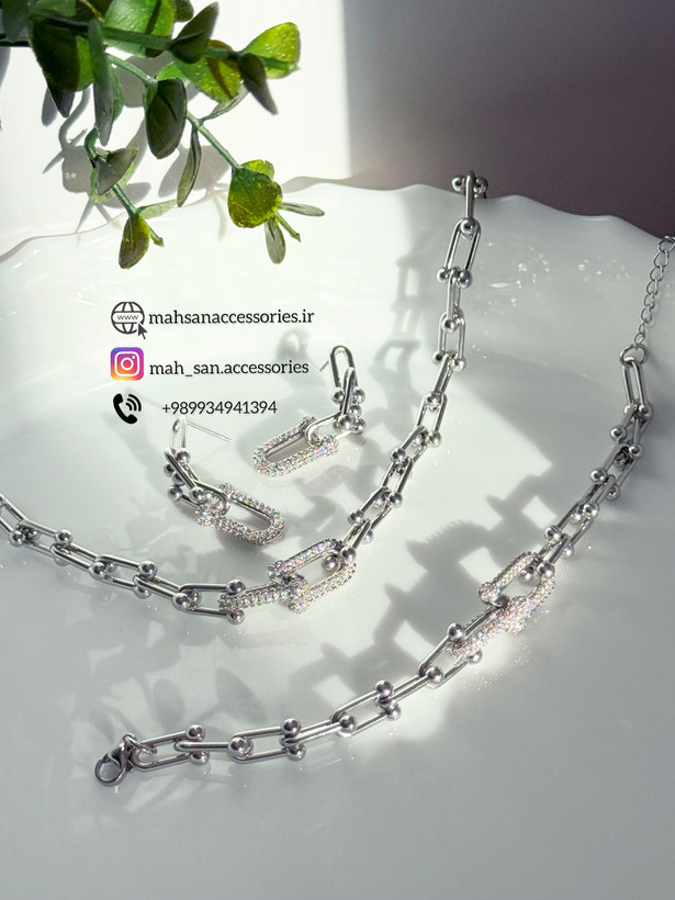نیم ست زنانه تیفانی طرح طلا رنگ سیلور رنگ ثابت