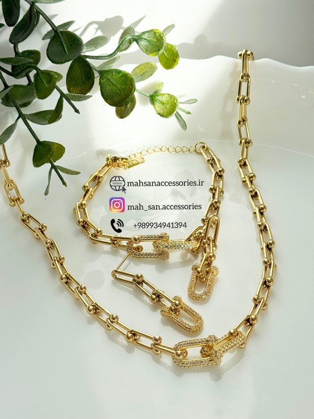 نیم ست 4تکه زنانه تیفانی طرح طلا رنگ گلد رنگ ثابت پلاک نگیندار تیفانی تک وسط