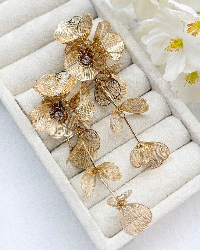 این گوشوارههای پروانهای زیبا با طراحی خاص و نگینهای ظریف، انتخابی فوقالعاده برای کسانی است که به جواهرات ظریف و درخشان علاقه دارند.