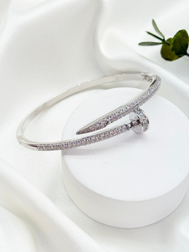 بنگل زنانه میخ نقره ای نگین کاری شده طرح نقره ژوپینگ هدیه خاص و جذاب