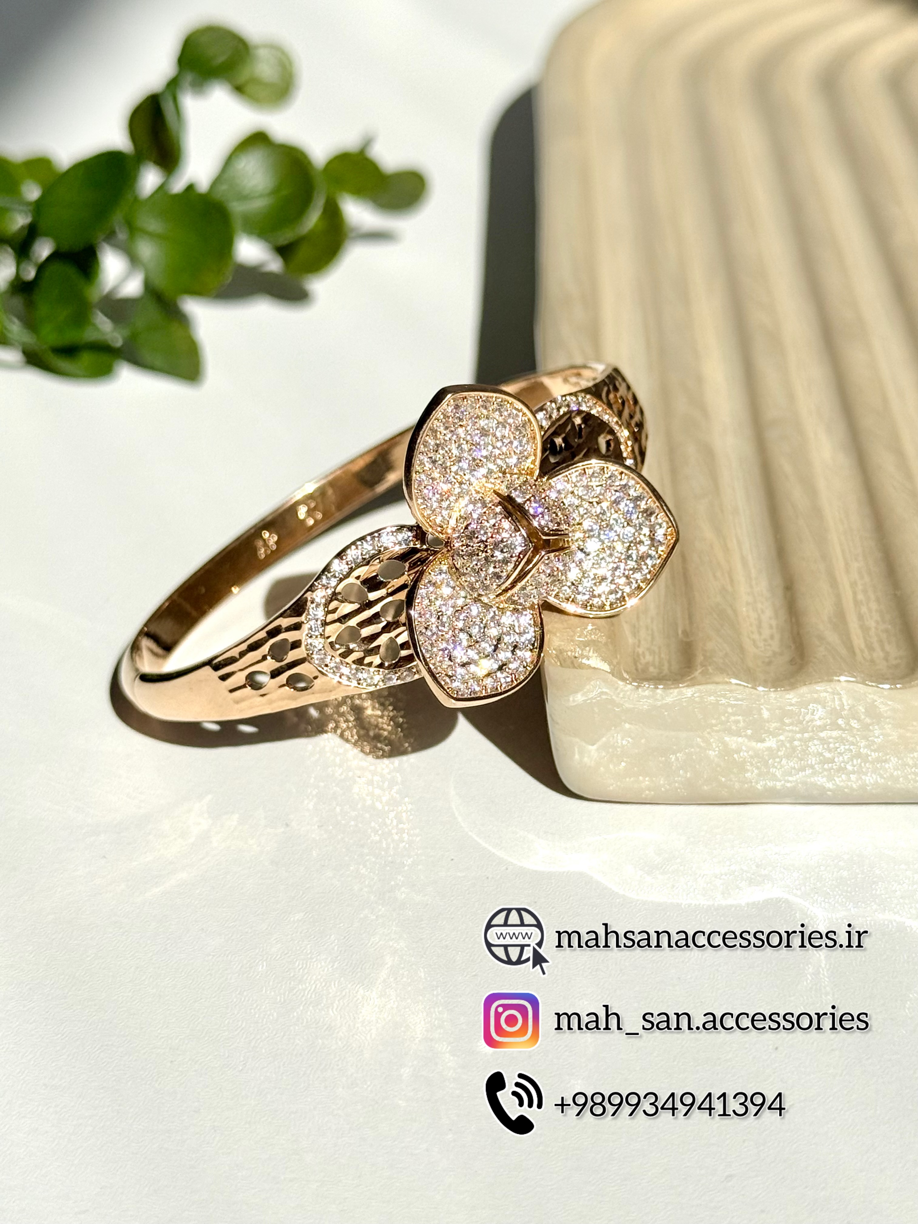 بنگل زنانه گل برجسته نگین کاری شده طرح طلا ژوپینگ هدیه خاص و جذاب