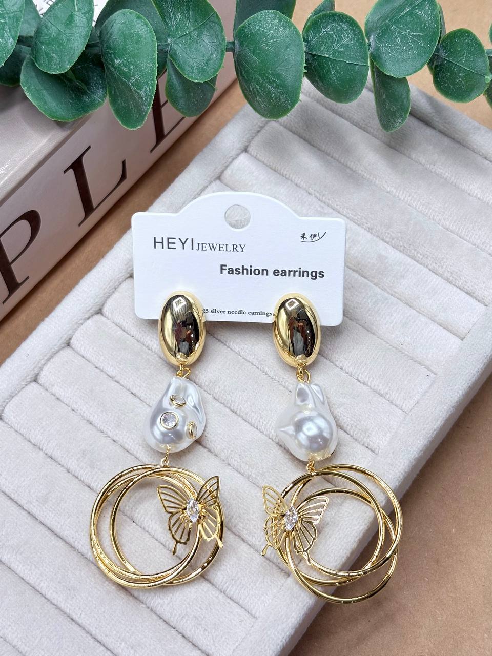گوشواره حلقه مروارید پروانه گلدرنگ هدیه خاص و جذاب